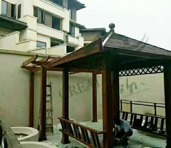 厦门维安绿色农业发展有限公司凉亭系列产品是采用高强度铝合金为原材料,经酸洗铬化,电泳或静电喷涂,木纹转印处理后,精密定制设计,保障安装。它具有防水防潮,不膨胀不变形,防腐蚀,具有逼真的木质感。成为别墅住宅及市政园林等建筑美丽的风景。