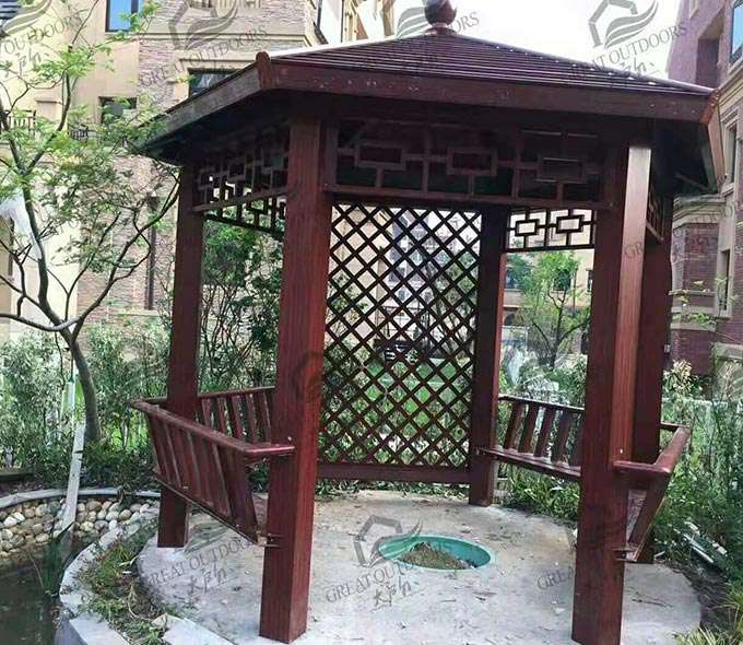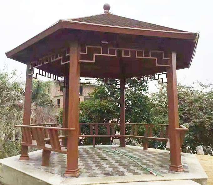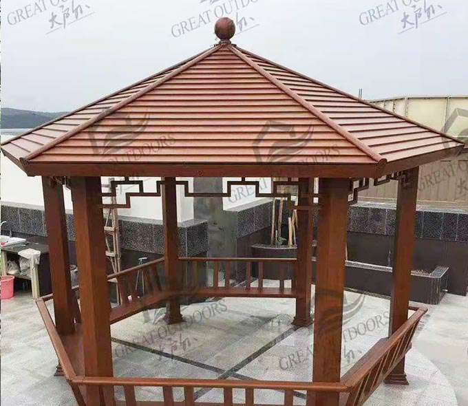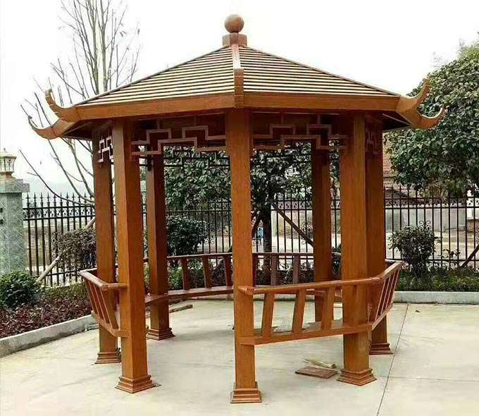 厦门维安绿色农业发展有限公司凉亭系列产品是采用高强度铝合金为原材料,经酸洗铬化,电泳或静电喷涂,木纹转印处理后,精密定制设计,保障安装。它具有防水防潮,不膨胀不变形,防腐蚀,具有逼真的木质感。成为别墅住宅及市政园林等建筑美丽的风景。